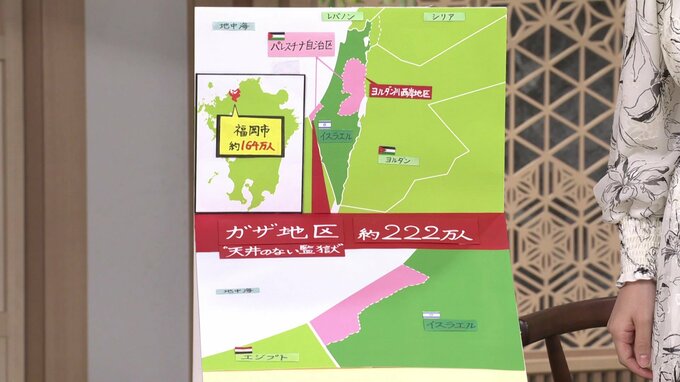 パレスチナ自治区ガザですが、広さは日本の福岡市と同じぐらい。そこに、220万人以上が閉じ込められているため、「天井のない監獄」と呼ばれています。