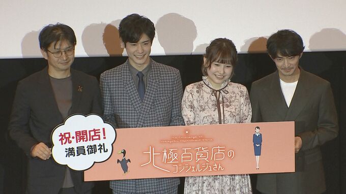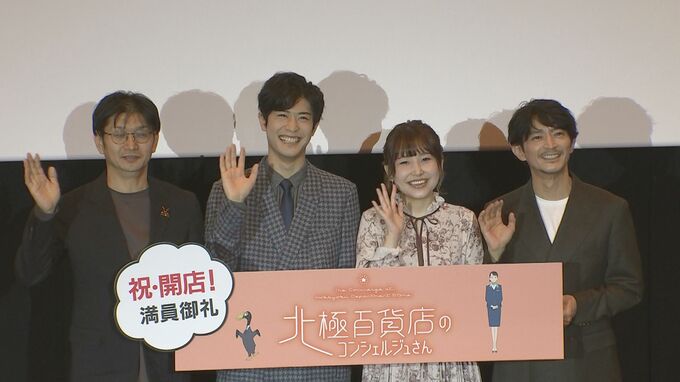 声優の川井田夏海さん、大塚剛央さん、津田健次郎さんが映画『北極百貨店のコンシェルジュさん』の公開記念舞台挨拶に登壇しました。