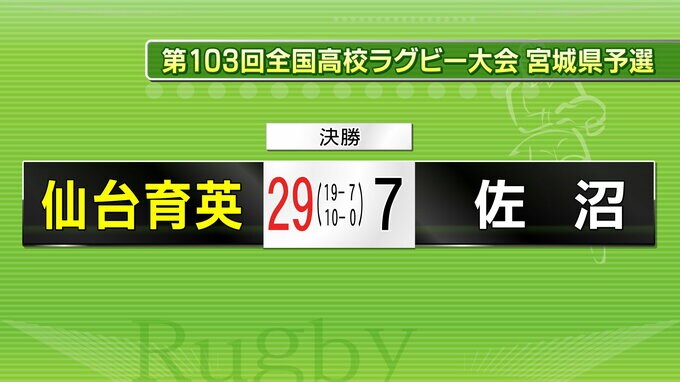 5つのトライを決めた仙台育英が29対7で勝ち、県予選28連覇で、花園出場を決めました。