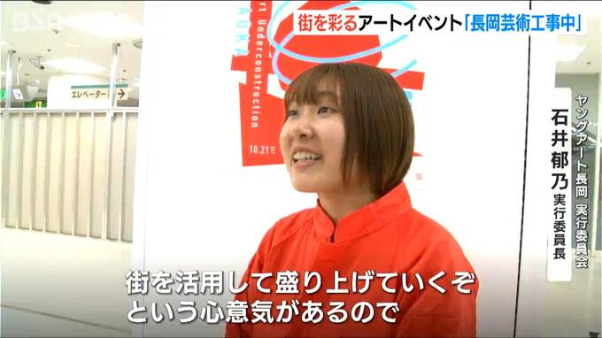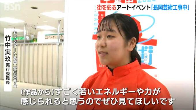 長岡市で21日から始まったアートイベント「長岡芸術工事中」。個性的な絵画やイラストなどがずらりと並びます。アートで街を盛り上げようと、長岡悠久ライオンズクラブと長岡造形大学が毎年主催しているもので、今年で10回目となります。長岡市中心部の空きビルや公園など10か所に、長岡造形大学の学生や卒業生らの作品が展示され、まちなかを彩ります。