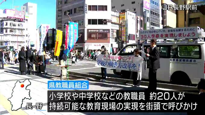 厳しい労働環境の改善を求めて、県の教職員組合が長野市で街頭宣伝を行いました。JR長野駅前では22日、小学校や中学校などの教職員およそ20人が、月80時間を超える超過勤務の実態を訴え、残業代の支払いなど、持続…