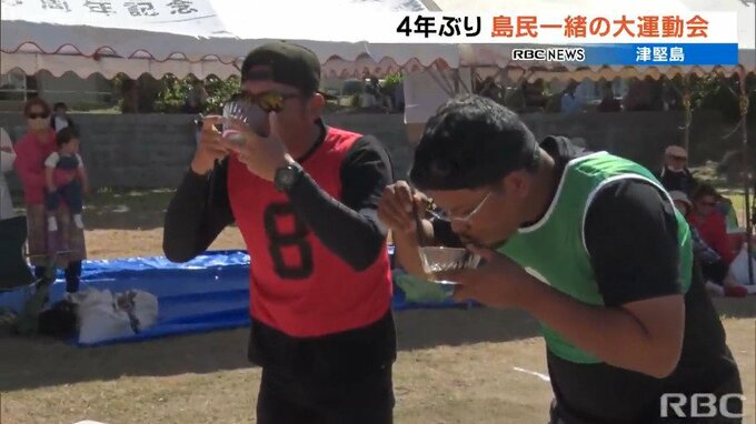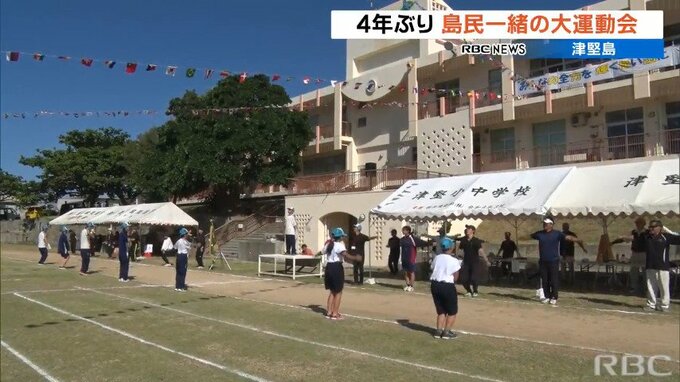 うるま市の津堅島で、4年ぶりとなる島をあげての運動会が開かれ、子ども達が地域の人たちと一緒に競技に挑みました。