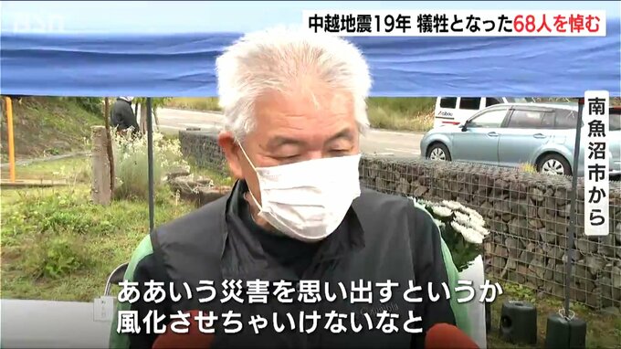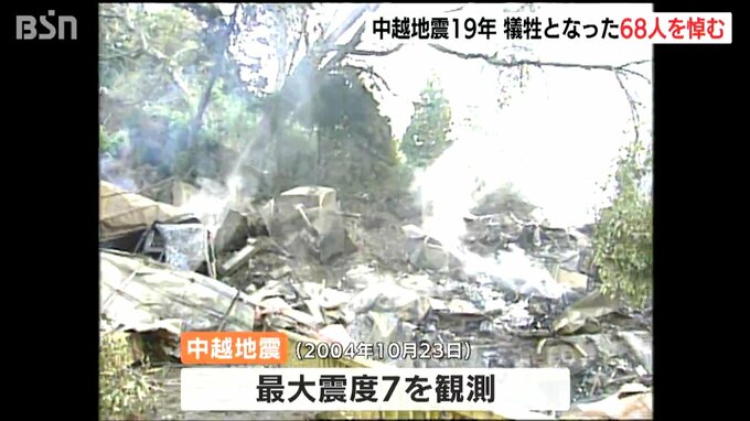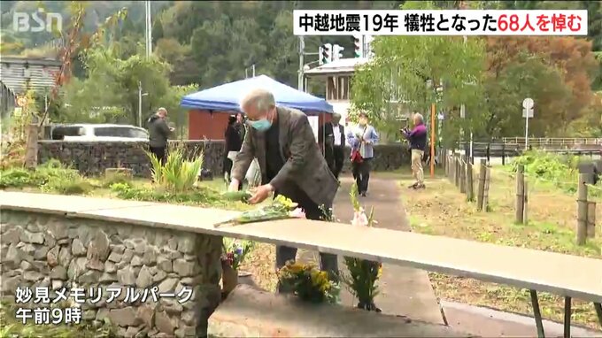 最大震度7を観測し、甚大な被害をもたらした中越地震から23日で19年です。被災地では犠牲となった68人を悼み、花が手向けられました。