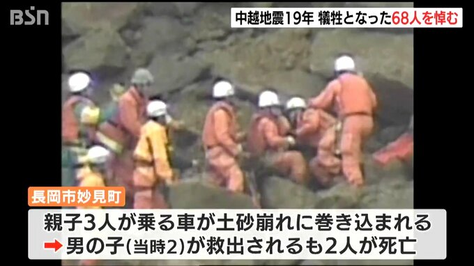 長岡市妙見町では親子3人が乗った車が土砂崩れに巻き込まれ、当時2歳だった男の子が奇跡的に助け出されましたが、2人が亡くなりました。
