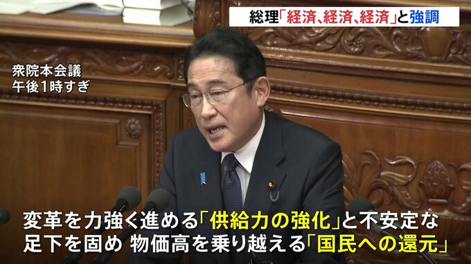国会では、岸田総理が所信表明演説を行い、「『供給力の強化』と『国民への還元』の二つを車の両輪として経済対策を実行する」と強調しました。岸田総理「『経済、経済、経済』、私は何よりも経済に重点を置いてま…