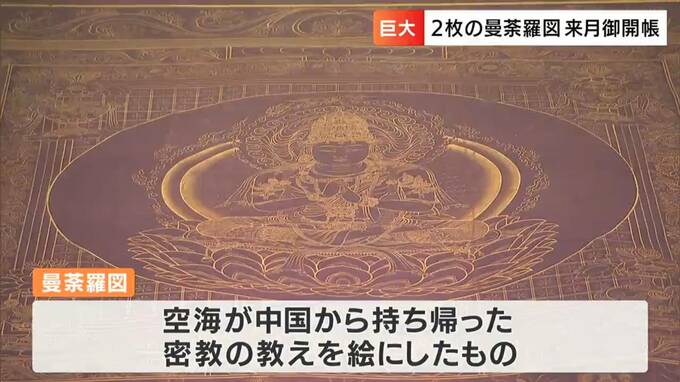 弘法大師・空海が中国から持ち帰った密教の教えを、絵で表現したのが曼荼羅です。江戸時代に描かれた2枚の曼荼羅が、来月(11月)7日から総本山善通寺で公開されます。御開帳を前に報道陣に撮影が許されました。善通…