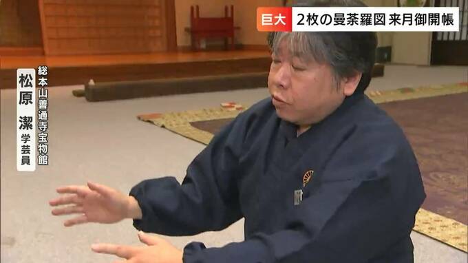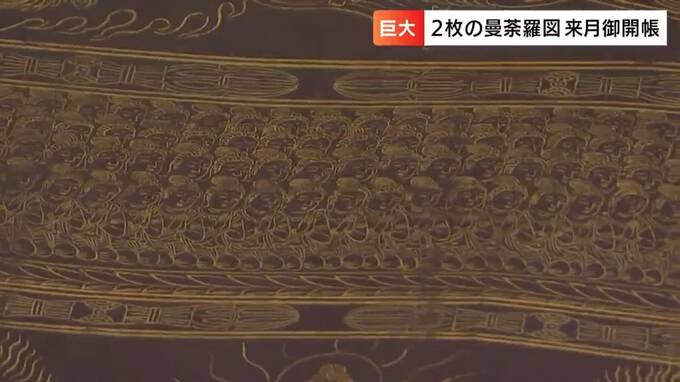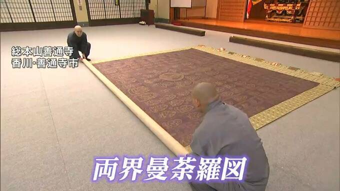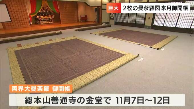 弘法大師・空海が中国から持ち帰った密教の教えを、絵で表現したのが曼荼羅です。江戸時代に描かれた2枚の曼荼羅が、来月(11月)7日から総本山善通寺で公開されます。御開帳を前に報道陣に撮影が許されました。