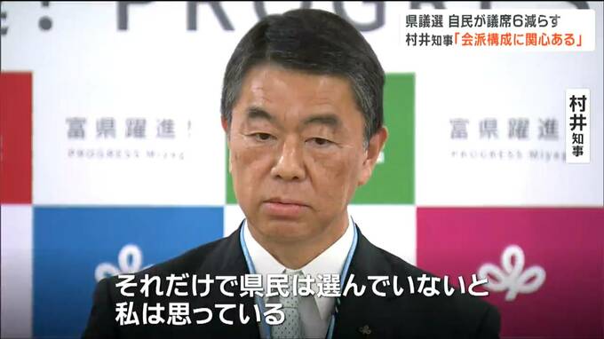 22日投開票が行われた県議選で、県政与党の自民党が議席を減らしたことについて村井知事は、「政党よりも会派構成が重要」などと述べ、具体的な言及を避けました。