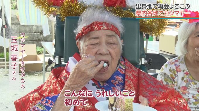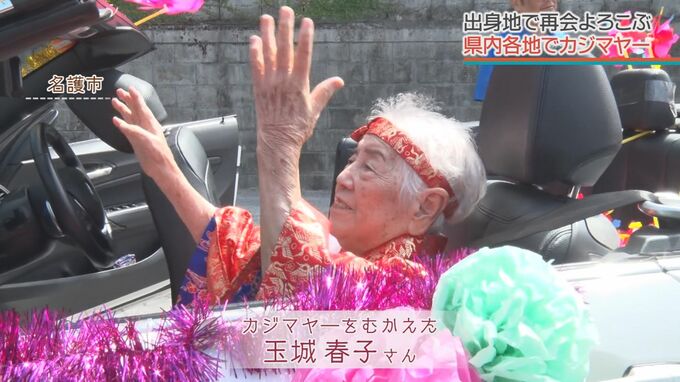 一方、名護市では、玉城春子(たまき はるこ)さんがカジマヤ―祝いをむかえました。
