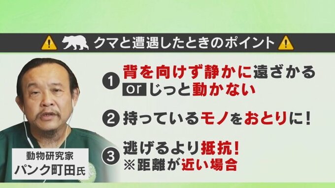 ではクマに遭遇した時にどのような行動をとるべきか、パンク町田さんによりますと、3つのポイントがあります。