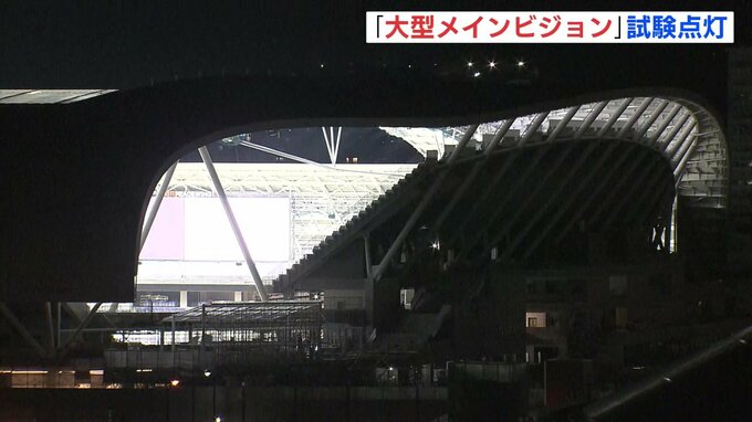 2023年末に完成予定の新しいサッカースタジアムに取り付けられた「大型メインビジョン」の試験点灯が23日、行われました。