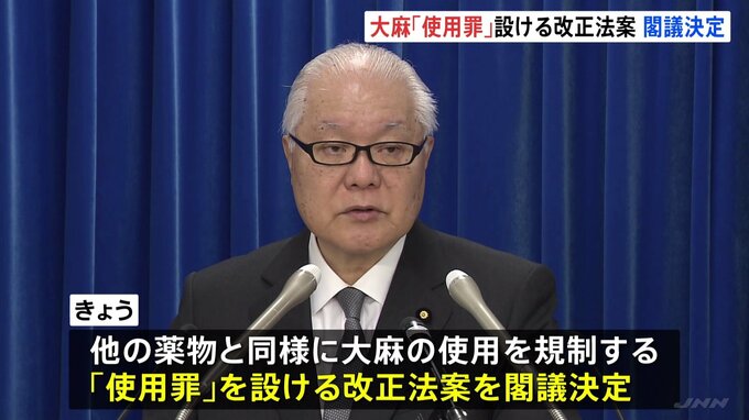 政府は若者の間で大麻の乱用が拡大するなか、他の薬物と同様に大麻の使用を規制する「使用罪」を設ける改正法案をきょう、閣議決定しました。不正な使用には、懲役7年以下の罰則を設けました。一方で、近年、国際…