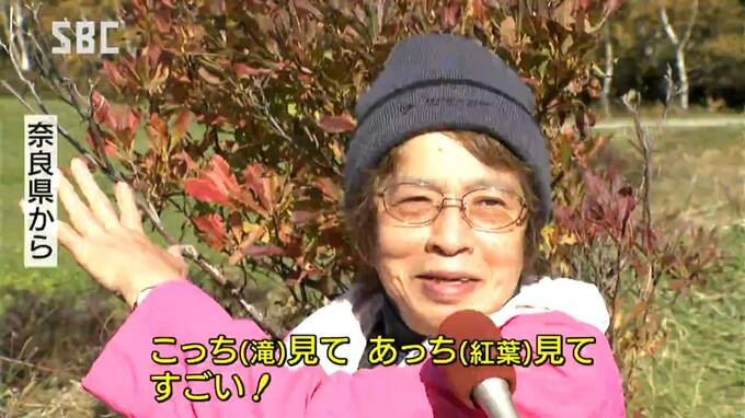 (奈良県から)「念願が叶いましたこっち(滝)見て、あっち(紅葉)見て、すごい!」