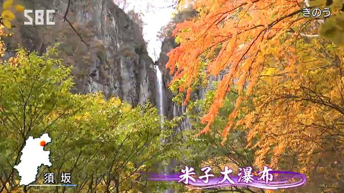 長野県須坂市の「米子大瀑布(よなこだいばくふ)」の紅葉が見頃を迎えています。
