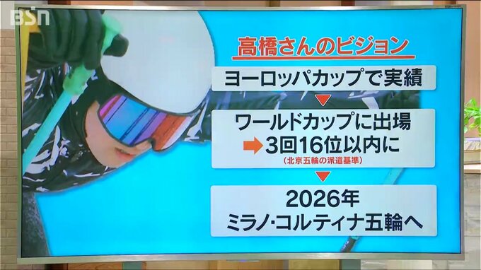 前回の北京オリンピックでは、ワールドカップで16位以内に3回入ると“代表内定”となっていたため、大成さんは、2026年のミラノ大会までにそれだけの実力をつけたいと考えています。