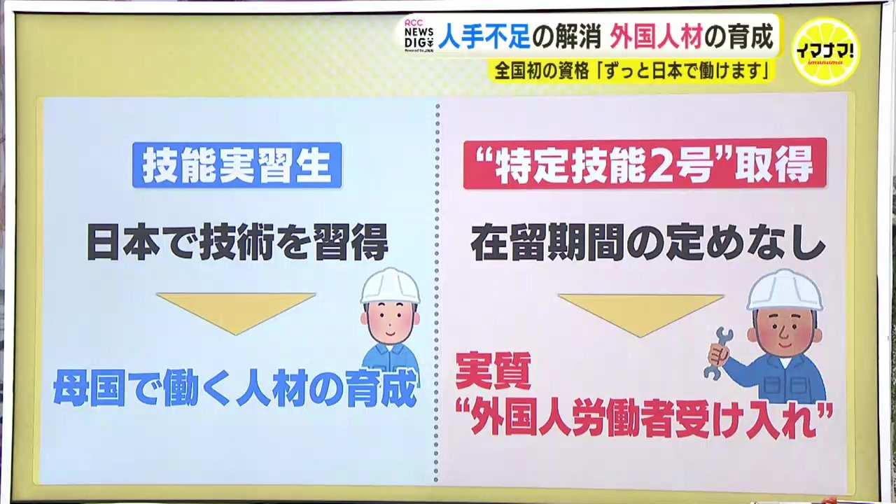 一方、今回の3人のように「特定技能2号」を取得すると在留期間の定めがなくなるため、条件を満たせば永住もできるようになります。さらに、家族を呼び寄せることもできます。実質的に外国人労働者を受け入れる制度ともいえます。