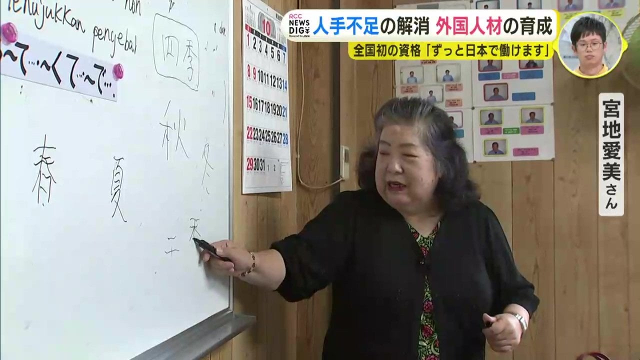 会社はおよそ20年前から昼休憩の時間を使って日本語教室を毎日、開催しています。教えるのは、社長の妻の 宮地愛美 さんです。学ぶのは、2号の彼らだけではありません。因島鉄工の下請け企業で働く外国人労働者も加わります。この日は10人が参加しました。