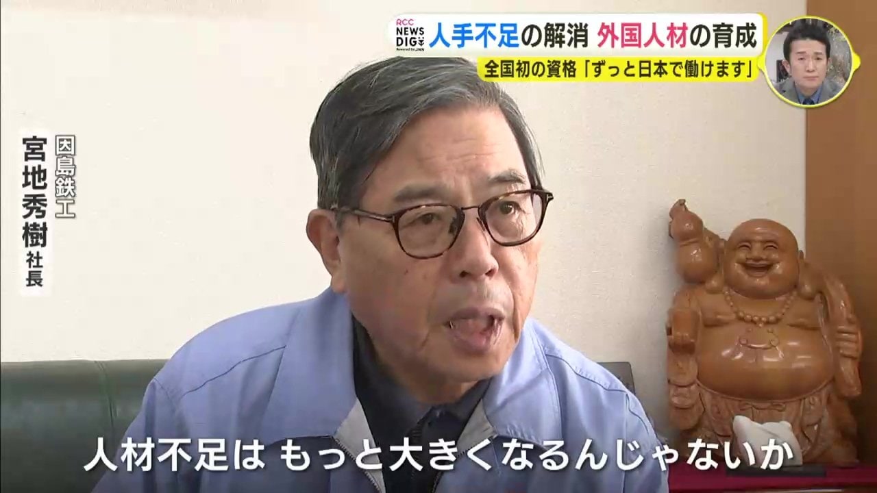 「人材不足というところが今後ももっと、もっと大きくなるんじゃないかなと思っておりますね。いままで1号じゃったら、5年で帰らないとあかんのよね。これ(2号)を取ったことによって、そのまま会社におってもらったら、たいへん大きなメリットとなると思います。うちで働いて帰られるよりも、そのままずっと続けておってもらったら、将来のうちの幹部となってもらえるメリットがありますよね。今、少子化で日本人おらんのんですわ。だから彼らが中心となって、幹部となってもらっていくことが会社の存続につながる」