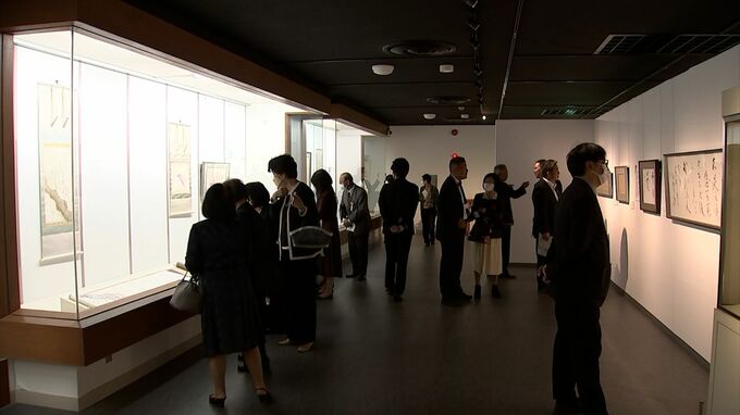 テープカットで始まった展覧会には、地元初公開の掛け軸や巻物に書かれた作品のほか高木さんがコレクションしていた墨や硯が展示されています。