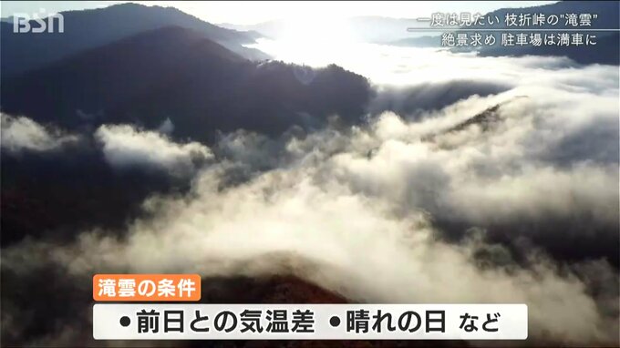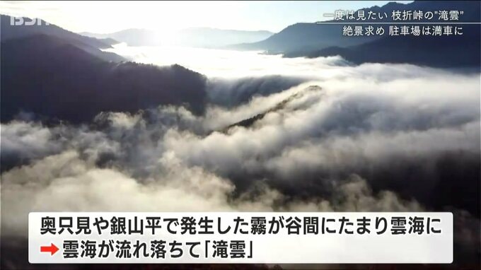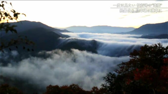 この時期、限られた条件の日にしか見ることができない秋の絶景を新潟県 魚沼市で撮影しました。雲が滝のように流れる「滝雲」です。神秘的な光景に多くの人が魅了されていました。