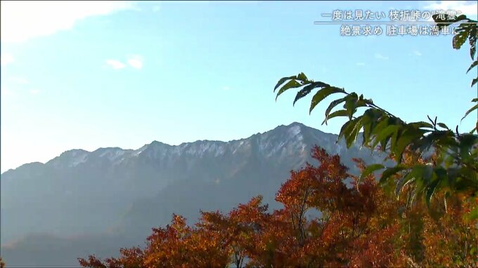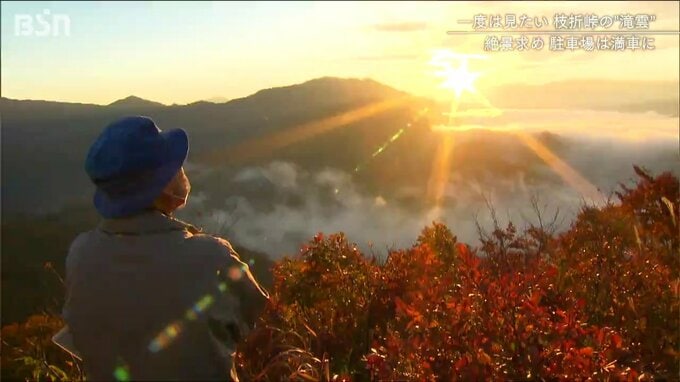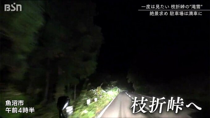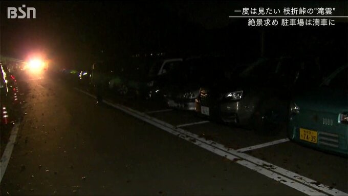 【記者リポート】「時刻は現在午前5時です。枝折峠の駐車場は50台ほど停められるということですが、平日にもかかわらずほぼ満車です」