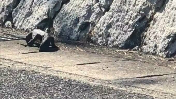 トカゲが最後に確認されたのは、側溝の中に入っていったこの時でした。