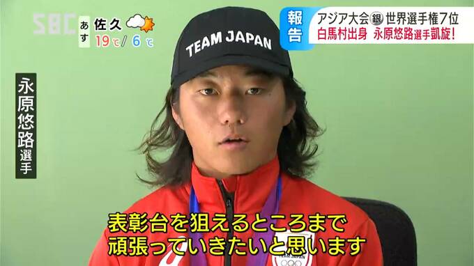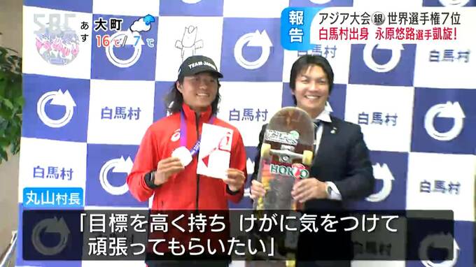 9月に開かれたアジア大会のスケートボードで銀メダルを獲得した白馬村出身の永原悠路(ながはら・ゆうろ)選手が凱旋し、来年(2024年)のパリオリンピックへの意気込みを語りました。