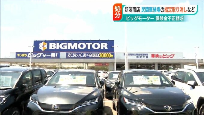 中古車販売大手『ビッグモーター』による保険金の不正請求問題に関連して北陸信越運輸局は、新潟市南区にある「ビッグモーター 新潟南店」に対して、民間車検場の指定取り消しなどの行政処分を行いました。