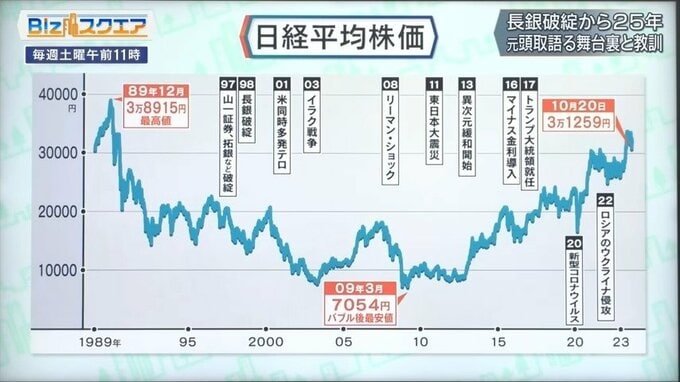 日本は再生を決意して大手銀行を破綻させたが、経済低迷の時代が続いた。今ようやくデフレ脱却の芽も出てきて、株価も3万円台まで回復してきた。