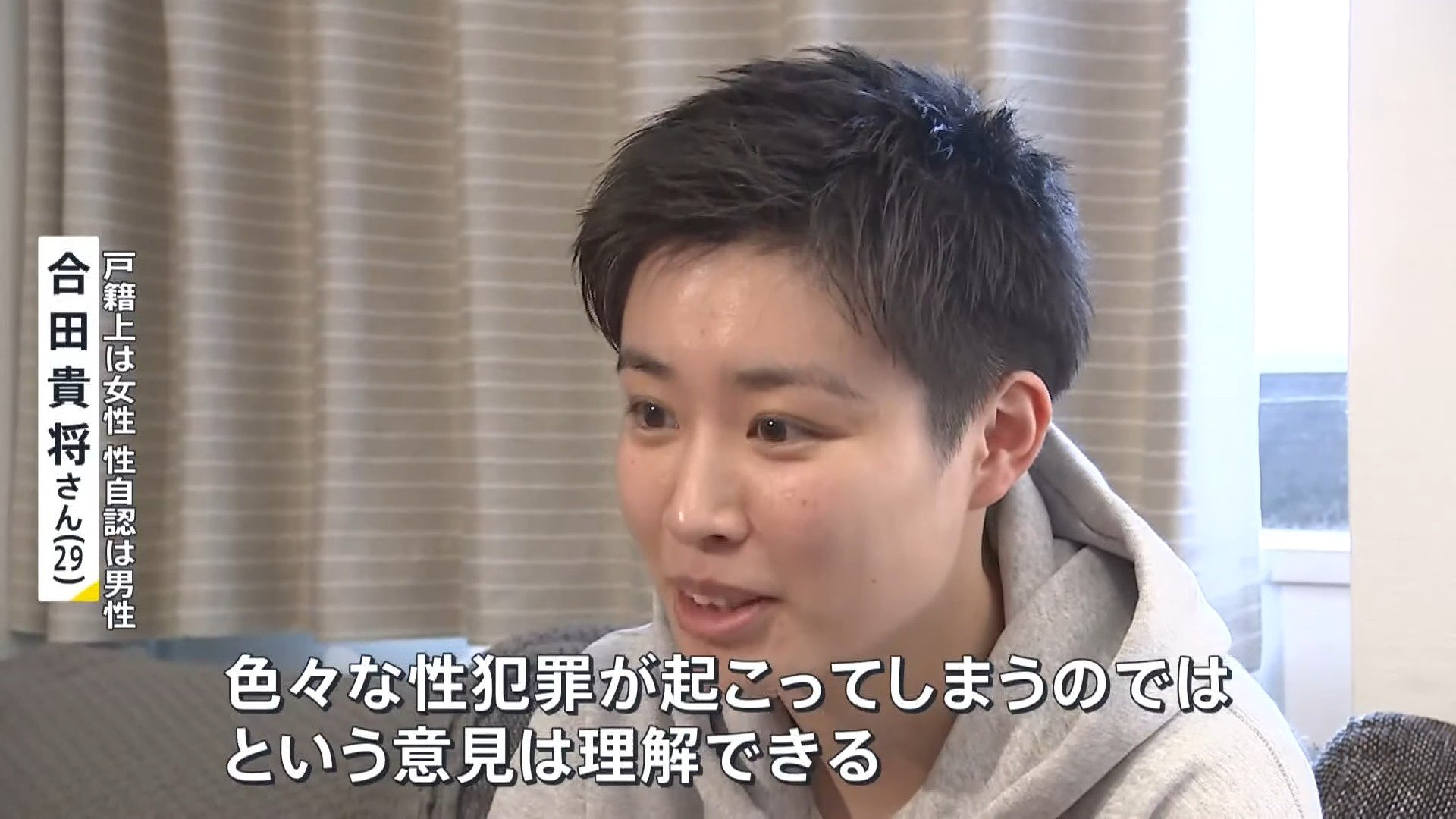 「手術要件を撤廃したら色々な性犯罪が起こってしまうのではという意見は理解できる。ただトランスジェンダーは苦しんでいる。幼いころから受けていた差別とか、大人になってからも手術を受けないといけないとか、本当に苦しんでいて。トランスジェンダーも生きやすい社会にしつつ、性犯罪が起こらないような仕組みを考えていくための折衷案を模索していければ」