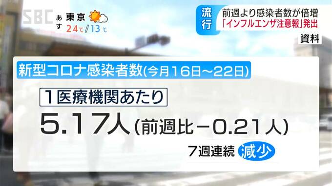 一方、新型コロナは、1医療機関あたり5.17人と、7週連続で減少しています。