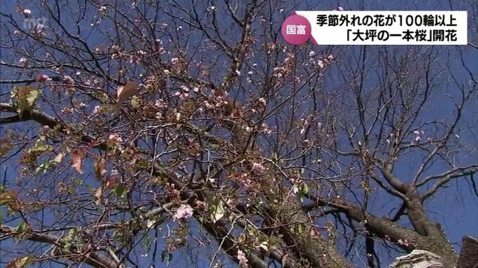 25日はさわやかな秋晴れとなりましたが、春に見頃を迎えるはずのあの花が咲きました。宮崎県国富町にある「大坪の一本桜」が、季節外れの花を咲かせています。(垣内沙耶記者)「秋が深まり、パンパスグラスが見ご…