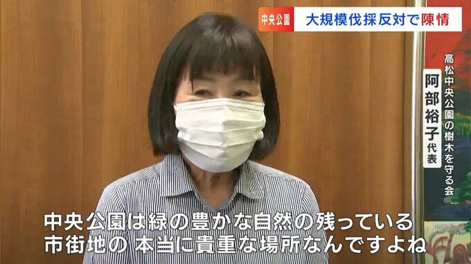 (高松 中央公園の樹木を守る会 阿部裕子代表)「中央公園というのはね緑の豊かな自然の残っている市街地の本当に貴重な場所なんですよね。そこが樹木が伐採されてそういうふうな状態の公園になるということは、とても日々利用している私たちにとって大変なことなんです」