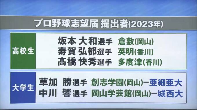 いよいよ明日(26日)に迫った、プロ野球ドラフト会議です。岡山・香川からはこちらの【画像①】の選手が志望届を提出しています。