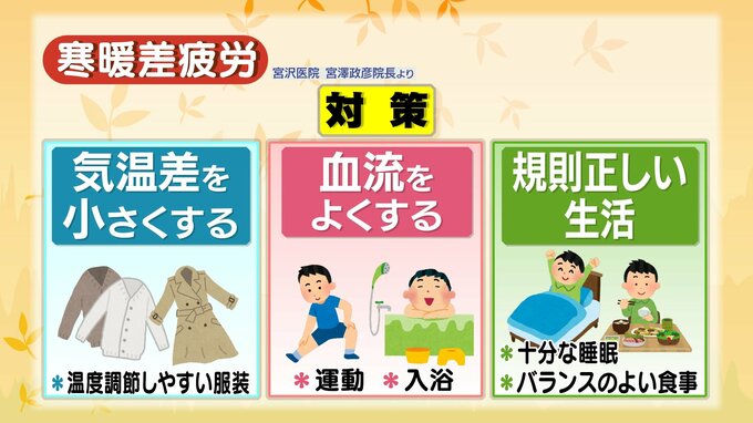 朝晩の気温差が大きいこの時期、気をつけたい「寒暖差疲労」について長野市の宮沢医院・宮澤政彦院長に坂下気象予報士が聞きました。