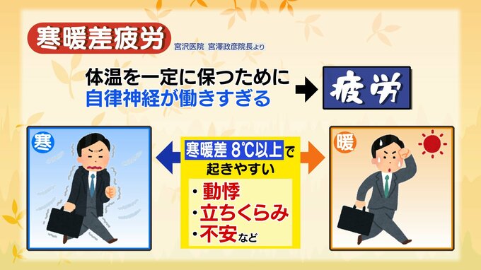 ◇寒暖差が大きいと、体温を一定に保つために自律神経が働きすぎ、疲れやすくなる