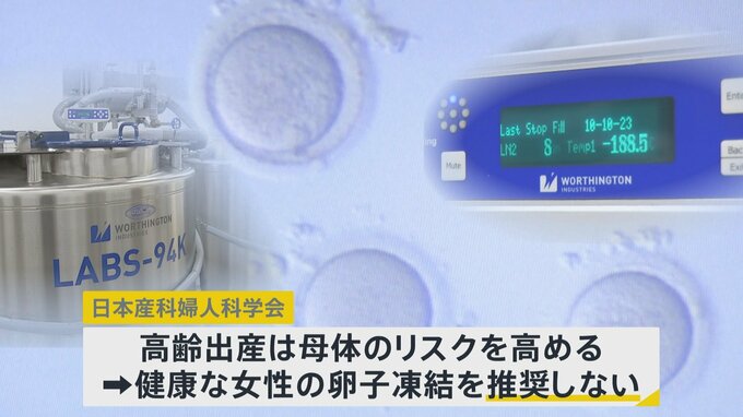 一方で、日本産科婦人科学会は『高齢出産は母体のリスクを高める』などとして、健康な女性の卵子凍結を推奨していません。