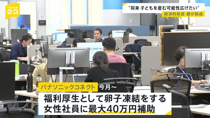 パナソニックグループのシステム開発などを行う同社は、10月から福利厚生として卵子凍結をする女性社員に最大40万円補助することとしました。34歳以下の女性社員を対象としています。