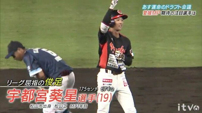そして、スカウト陣の関心を最も集めたのが、松山工業出身のルーキー。宇都宮葵星(うつのみや・きさら)。最大の武器は内野ゴロをセーフにできる俊足!愛媛の投手だった父の夢も受け継るか?オールドファンも注目です。