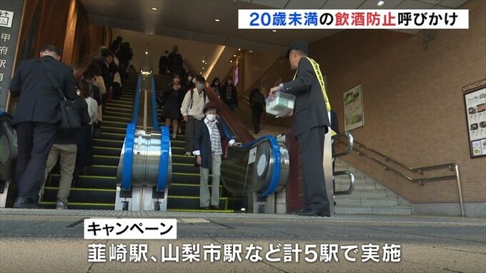 甲府市などで20歳未満の飲酒や飲酒運転の防止を呼びかける街頭キャンペーンが行われました。