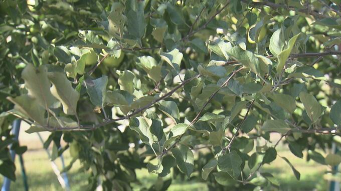 「やめてほしいです。(盗まれなかった木と盗まれた木を見ながら)あれがあれですからね…。びっくりでしょ。信じられなくて。大きいのを見て取っているので、素人ではないなと思ってる。取り方が。知ってる人じゃないと、そういう取り方もできなければ、どこにそのリンゴがあるっていうのもわからなければ、この中に入って取れないので」