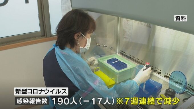 一方、新型コロナウイルスの報告数は190人で7週連続で減少しました。