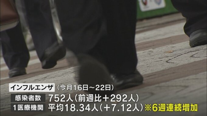 県によりますと10月22日までの1週間に県内41の定点医療機関から報告があったインフルエンザの感染者数は752人で、前の週より292人、1.6倍に増えました。