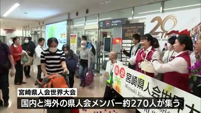 27日から始まる「宮崎県人会世界大会」を前に、国内外にいる県人会のメンバーたちが、26日、宮崎に到着しました。(中野光樹記者)「県人会の関係者が宮崎空港に到着しました。あたたかく出迎えられています」国内…