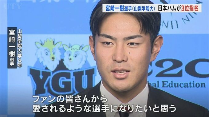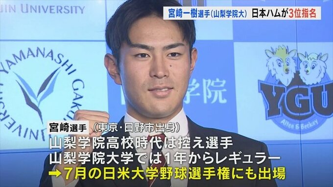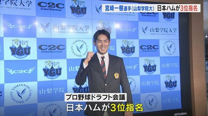 26日に開かれたプロ野球ドラフト会議で、山梨学院大学の宮崎一樹選手が北海道日本ハムファイターズから3位指名を受けました。