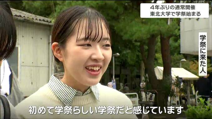 仙台市の東北大学では、新型コロナの5類移行で4年ぶりに通常規模の大学祭が戻ってきました。キャンパスは多くの人で賑わっています。