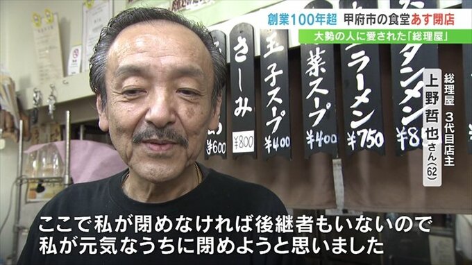 やっぱりお爺さんから3代にわたって100年以上やっているんで、どう閉めようか分からなかった。でもここで私が閉めなければ後継者もいないので、しょうがないと思って私が元気なうちに閉めようと思いました。