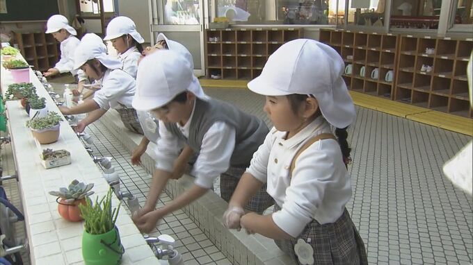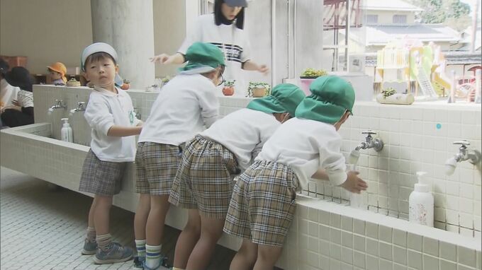 手洗いとうがいを徹底しています。この園では今週に入りインフルエンザや発熱などを理由に10人ほどが欠席。窓は1日中開け放ち、コロナ禍同様の感染対策です。