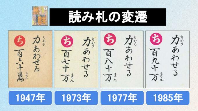 上毛かるたが初めて発行された1947年当時は『力あわせる百六十万』でした。その後、1973年に『百七十万』、1977年に『百八十万』、1985年に『百九十万』となり、1993年に現在の『二百万』と過去4回、人口が増えるたびに10万人単位で改訂されてきました」