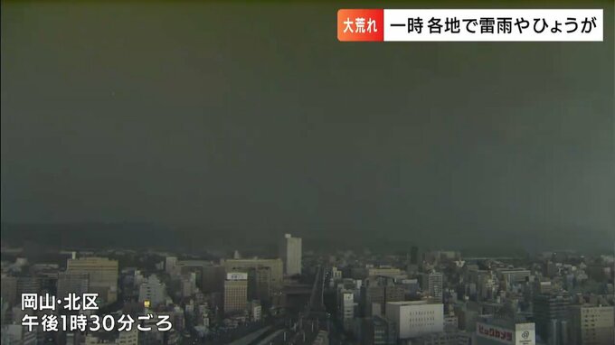 きょう(27日)午後1時30分ごろ、岡山市中心部の上空を黒い雲が覆いました。